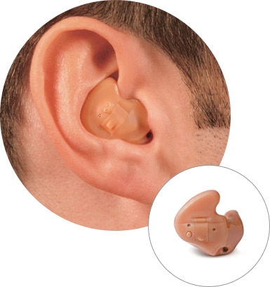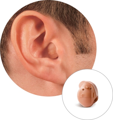 This hearing aid is placed in the ear canal and is the smallest available. It takes advantage of the ear’s natural ability to collect sound, and its discreet size makes the device virtually invisible to others.