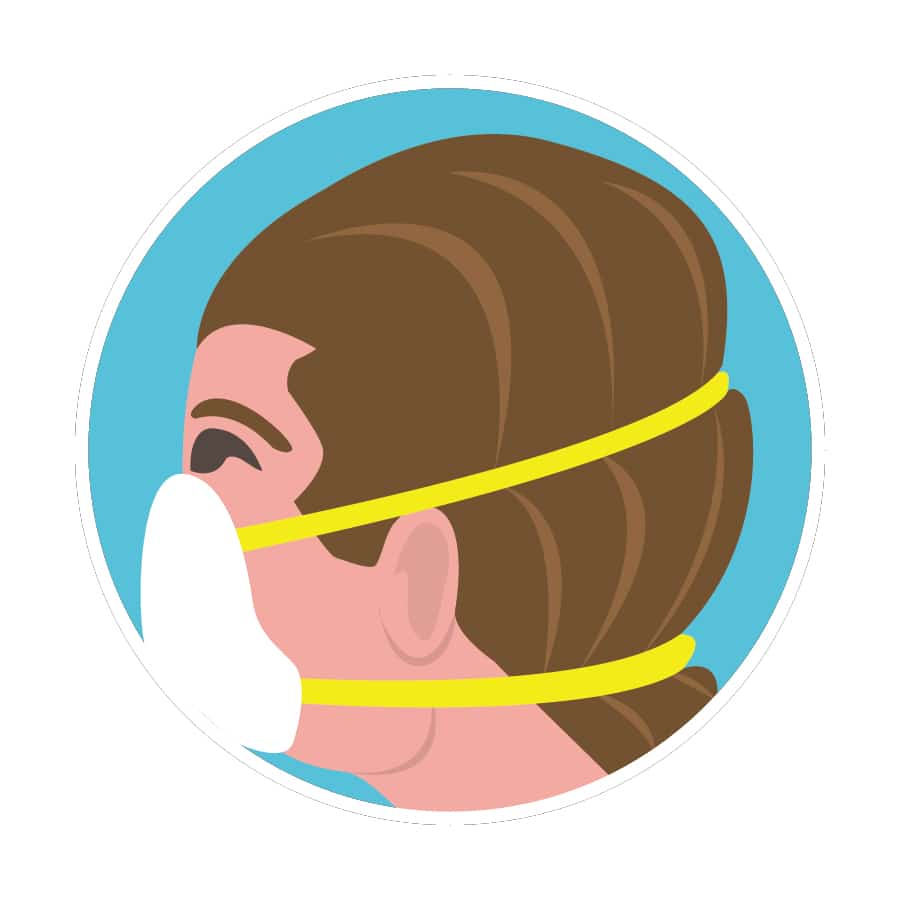Sew two buttons onto a fabric headband above your ears and hook the mask’s elastic onto the buttons.